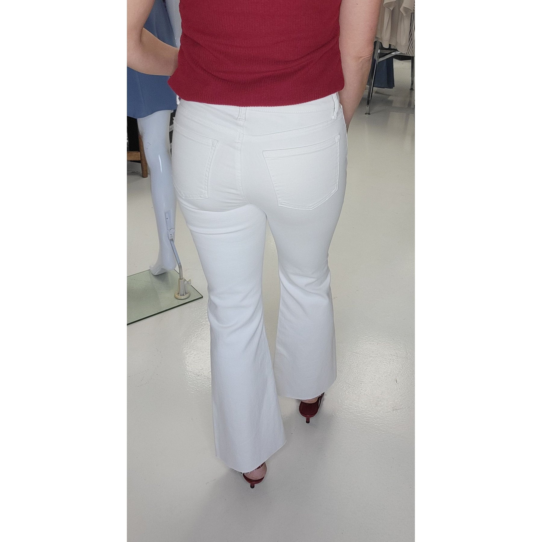 These cropped flares are your new holiday wardrobe essential! Cut from a flattering white denim with just 3% spandex, they offer the perfect stretch for all-day comfort without sacrificing that crisp, structured look. The cropped length hits right at the ankle, making them endlessly versatile—pair them with a sparkly holiday top, a cozy sweater, or even a silky blouse for instant style. Whether you're heading to a festive gathering or keeping it casual, these flares deliver that effortless cool-girl vibe every time.