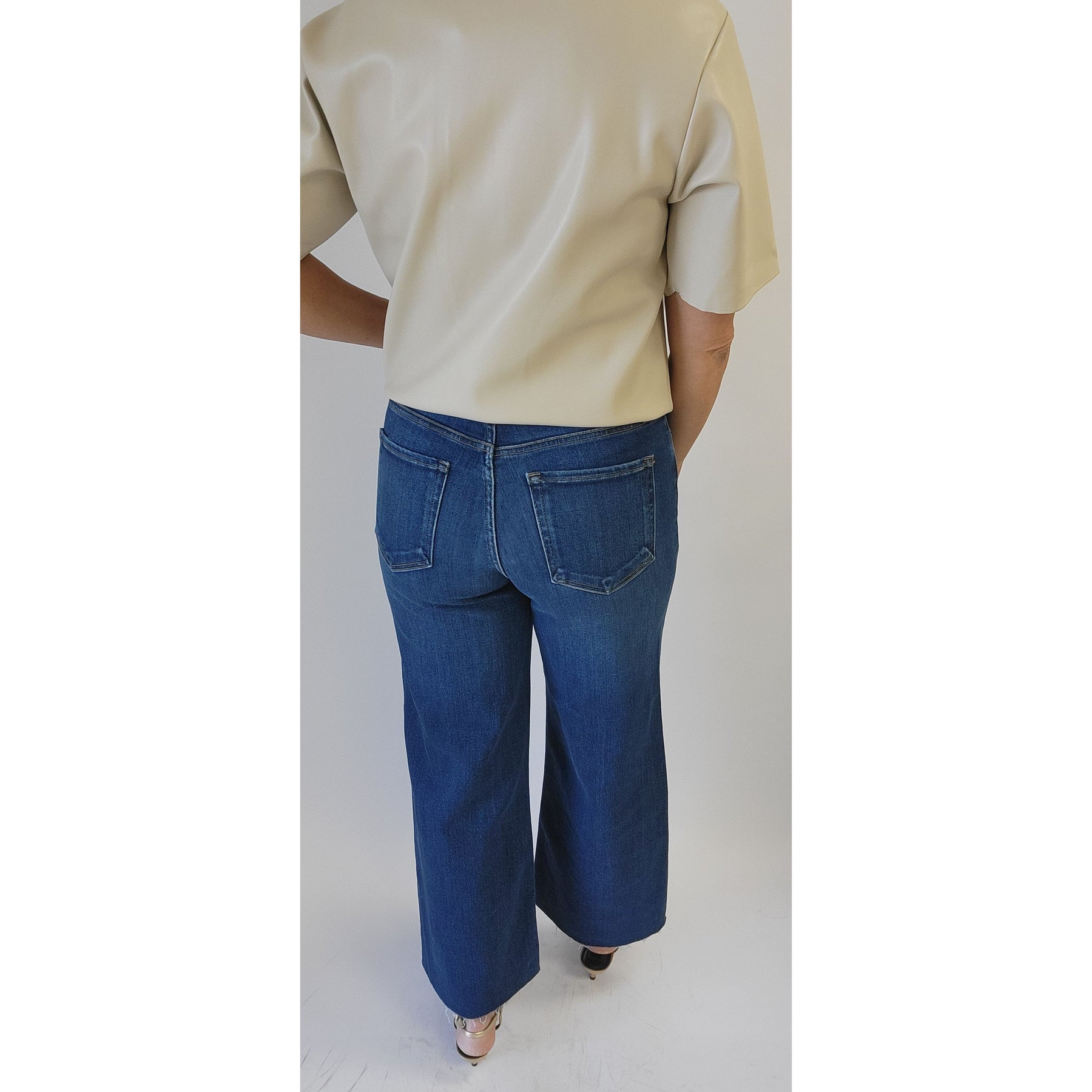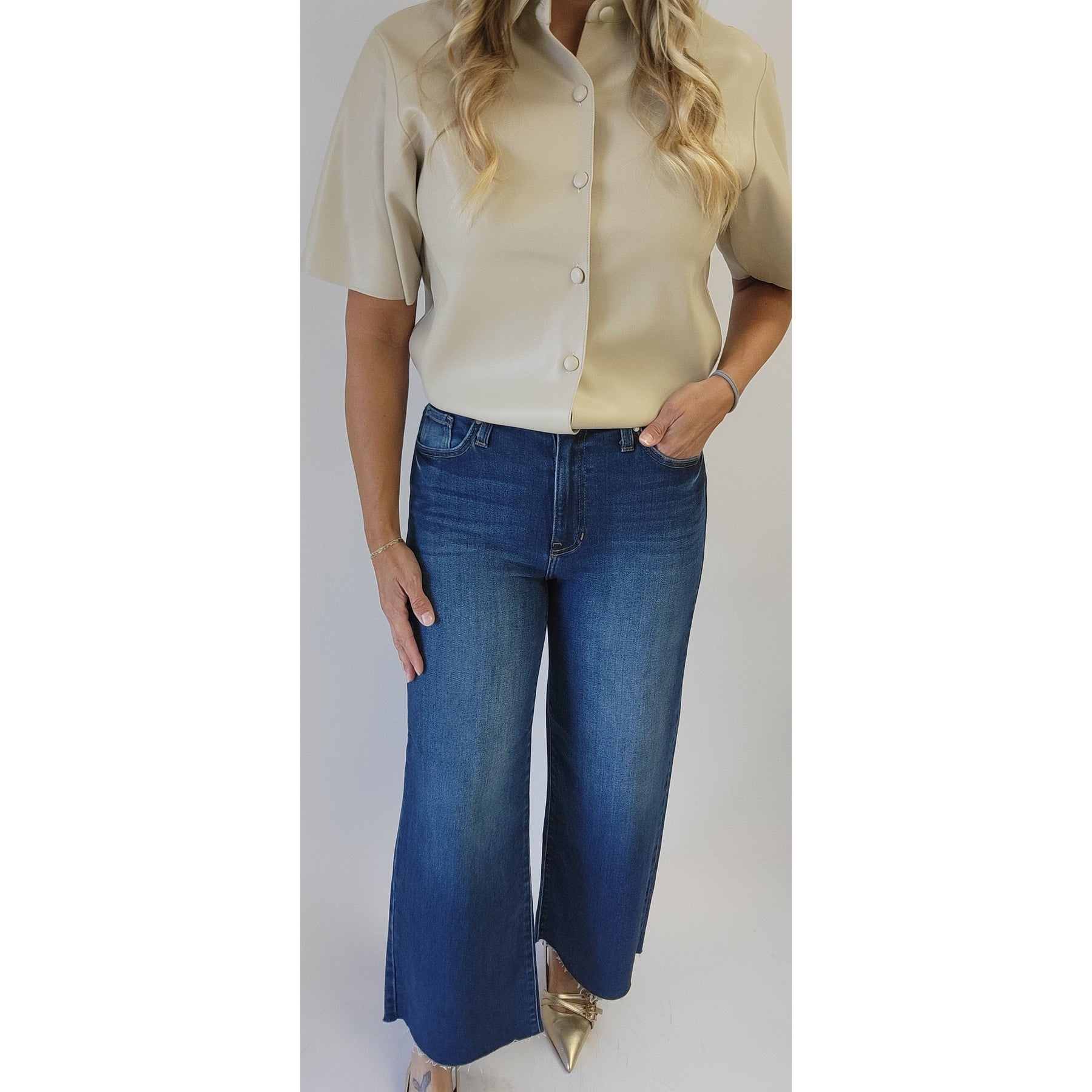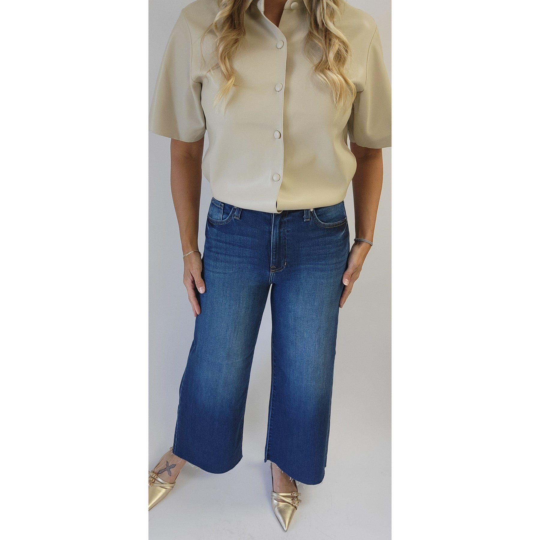Meet your new denim obsession—dark, bold, and unapologetically cool. These wide-leg beauties feature a trendy scissor cut and raw edge that screams modern edge. With 2% spandex woven in, they hug you in all the right ways while keeping you comfy all day long. Throw them on with literally any top, lace up your sneakers or slip into boots, and you're ready to take on the world. Pure denim magic.